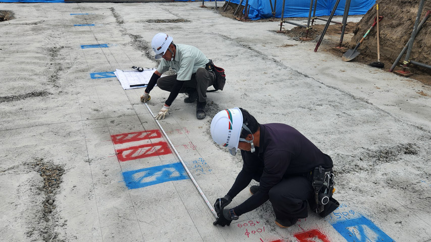 コンクリート打設中も精度の確認を行いながら相番を行う。